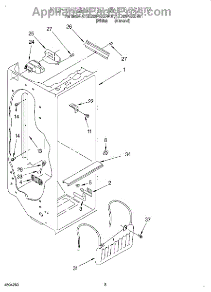 Parts for Whirlpool 8ED25PQXDW01: 02 - Refrigerator Liner Parts
