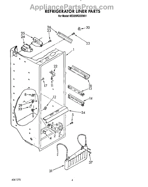 Parts for Whirlpool 8ED25RQXXW01: 03 - Refrigerator Liner Parts