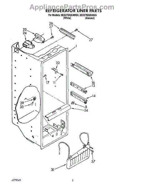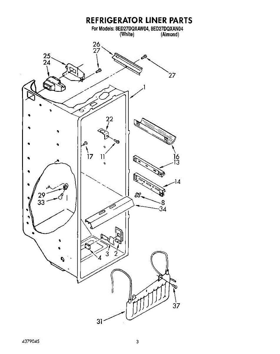 Parts for Whirlpool 8ED27DQXAW04: 02 - Refrigerator Liner Parts