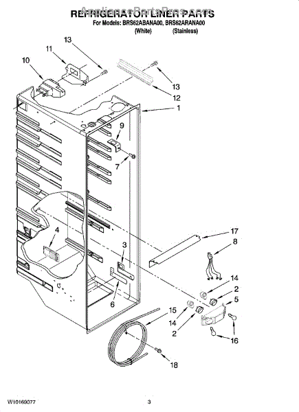 Parts for Whirlpool BRS62ABANA00: 02 - Refrigerator Liner Parts