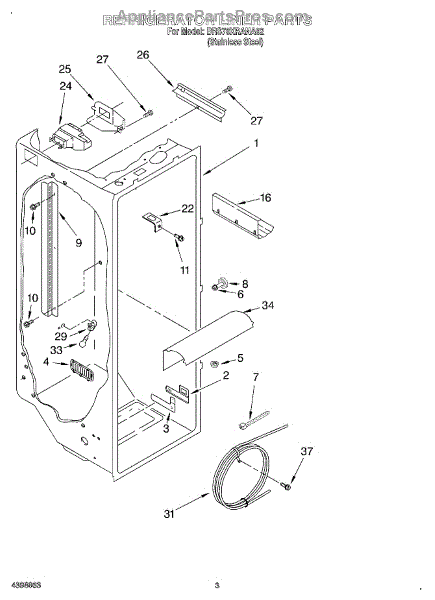 The Air Diffuser Assembly is an OEM part for Whirlpool refrigerators. It regulates the airflow between the refrigerator and freezer compartments, ensuring the proper distribution of cold air to maintain the desired temperatures in both sections.