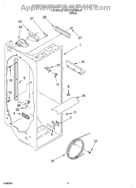The Air Diffuser Assembly is an OEM part for Whirlpool refrigerators. It regulates the airflow between the refrigerator and freezer compartments, ensuring the proper distribution of cold air to maintain the desired temperatures in both sections.