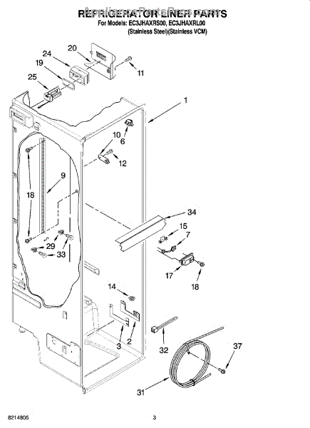 The Water Reservoir Tubing is an OEM replacement part for Whirlpool refrigerators. It is a flexible plastic tubing that replaces the water reservoir and holds the water for the ice maker and dispenser. Causes can include cracks from heat or cold exposure over time, punctures from sharp edges during installation, or deterioration of plastic tubing that impacts integrity. Symptoms of bad water reservoir tubing include: