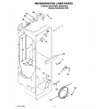 The Water Reservoir Tubing is an OEM replacement part for Whirlpool refrigerators. It is a flexible plastic tubing that replaces the water reservoir and holds the water for the ice maker and dispenser. Causes can include cracks from heat or cold exposure over time, punctures from sharp edges during installation, or deterioration of plastic tubing that impacts integrity. Symptoms of bad water reservoir tubing include:
