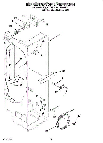 The Water Reservoir Tubing is an OEM replacement part for Whirlpool refrigerators. It is a flexible plastic tubing that replaces the water reservoir and holds the water for the ice maker and dispenser. Causes can include cracks from heat or cold exposure over time, punctures from sharp edges during installation, or deterioration of plastic tubing that impacts integrity. Symptoms of bad water reservoir tubing include: