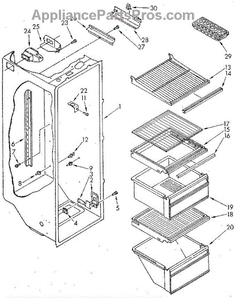 The Shelf Frame is an OEM replacement part for Whirlpool refrigerators. It is an internal frame component that provides structure and support for refrigerator shelves. Measures about 17 inches wide by 17 inches deep. Causes of a bad shelf frame can include damage like dents, bends or cracks that compromise strength. Repeated impact over the lifespan may weaken metal mounting rails. Symptoms of a bad shelf frame include: