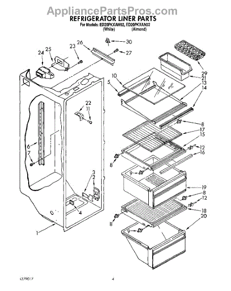 Parts for Whirlpool ED20PKXAN02: 02 - Refrigerator Liner Parts