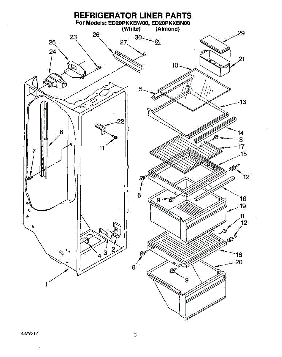 Parts for Whirlpool ED20PKXBW00: 02 - Refrigerator Liner Parts