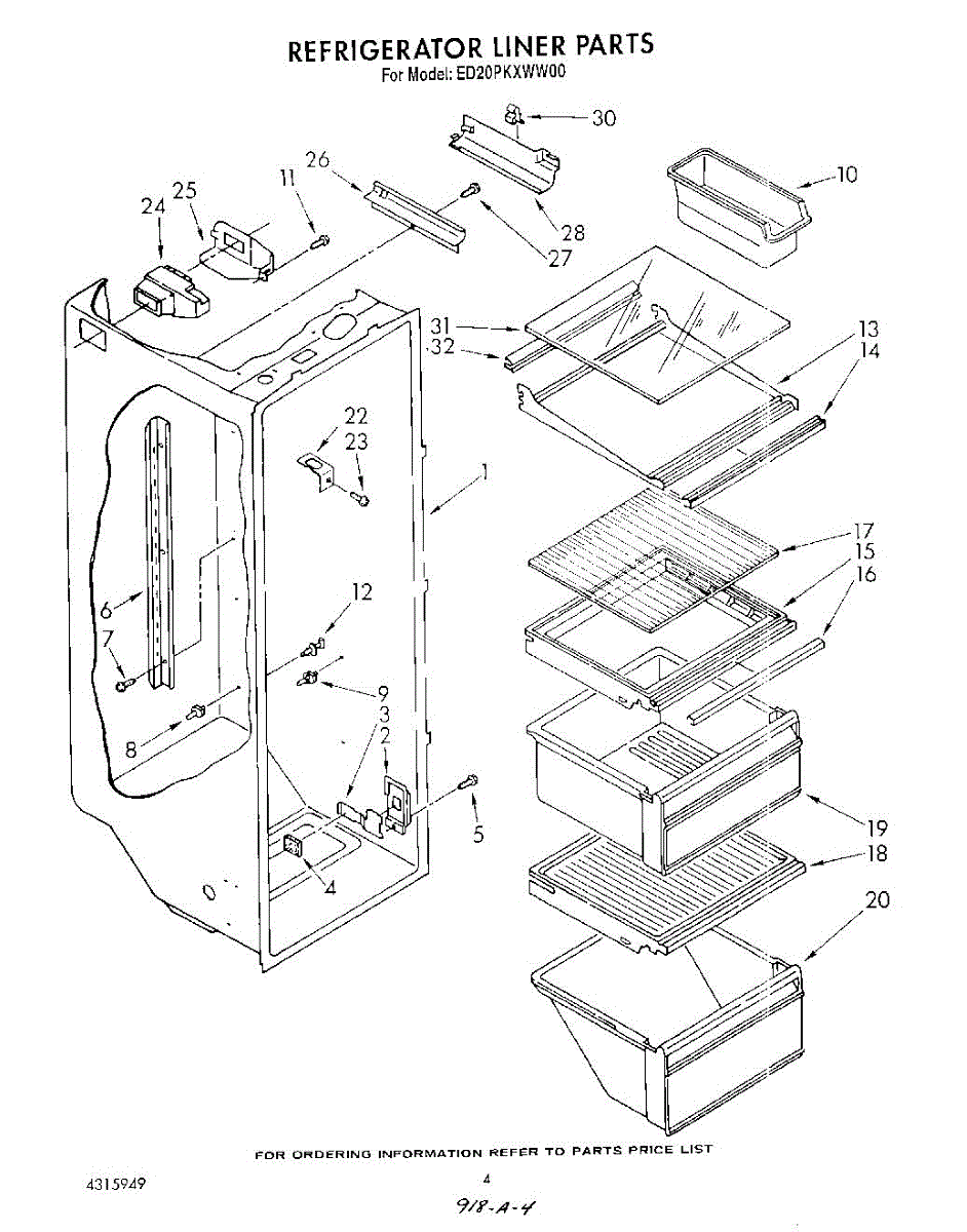 Parts for Whirlpool ED20PKXWW00: 03 - Refrigerator Liner Parts
