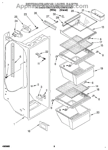 This air deflector directs chilled air inside the refrigerator's fresh-food compartment to maintain even cooling and proper circulation. It replaces a damaged or missing deflector so cold air reaches interior shelves and drawers. What it does: