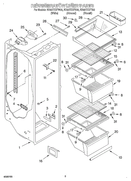 The Air Diffuser Assembly is an OEM part for Whirlpool refrigerators. It regulates the airflow between the refrigerator and freezer compartments, ensuring the proper distribution of cold air to maintain the desired temperatures in both sections.