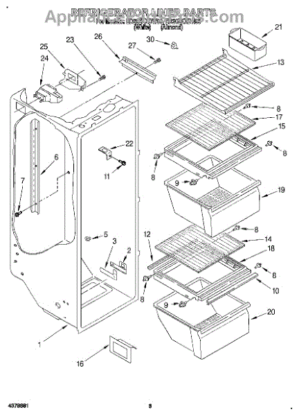 Parts for Whirlpool ED20ZKXDW00: 02 - Refrigerator Liner Parts