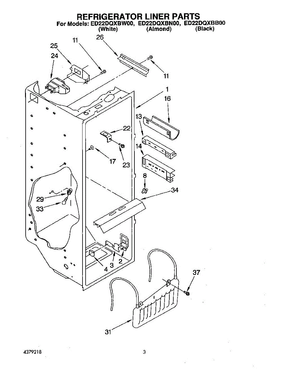 Parts for Whirlpool ED22DQXBN00: 02 - Refrigerator Liner Parts