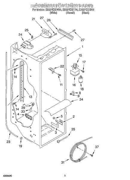 The Air Diffuser Assembly is an OEM part for Whirlpool refrigerators. It regulates the airflow between the refrigerator and freezer compartments, ensuring the proper distribution of cold air to maintain the desired temperatures in both sections.