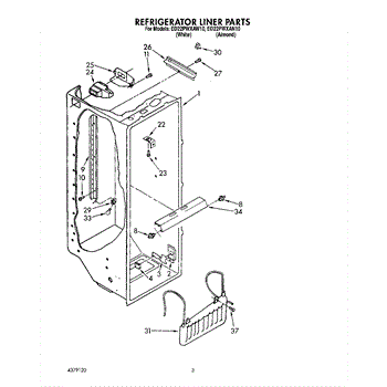 The Air Diffuser Assembly is an OEM part for Whirlpool refrigerators. It regulates the airflow between the refrigerator and freezer compartments, ensuring the proper distribution of cold air to maintain the desired temperatures in both sections.