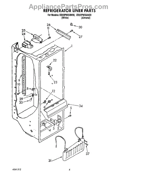 The Air Diffuser Assembly is an OEM part for Whirlpool refrigerators. It regulates the airflow between the refrigerator and freezer compartments, ensuring the proper distribution of cold air to maintain the desired temperatures in both sections.