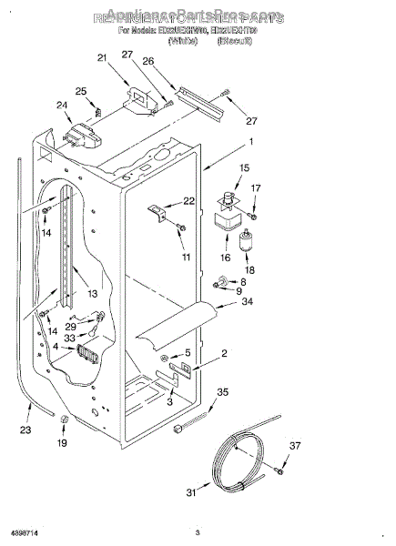 The Air Diffuser Assembly is an OEM part for Whirlpool refrigerators. It regulates the airflow between the refrigerator and freezer compartments, ensuring the proper distribution of cold air to maintain the desired temperatures in both sections.