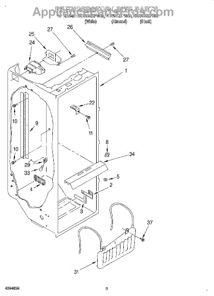 Parts for Whirlpool ED25CQXFW00: 02 - Refrigerator Liner Parts