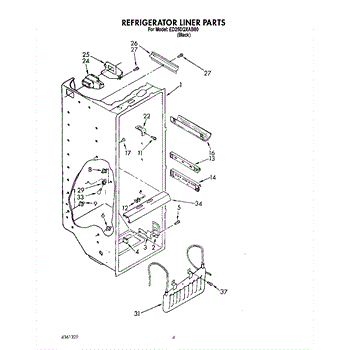 The Air Diffuser Assembly is an OEM part for Whirlpool refrigerators. It regulates the airflow between the refrigerator and freezer compartments, ensuring the proper distribution of cold air to maintain the desired temperatures in both sections.