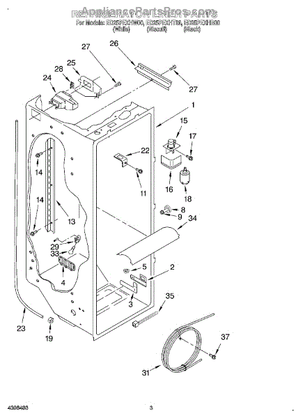 The Air Diffuser Assembly is an OEM part for Whirlpool refrigerators. It regulates the airflow between the refrigerator and freezer compartments, ensuring the proper distribution of cold air to maintain the desired temperatures in both sections.
