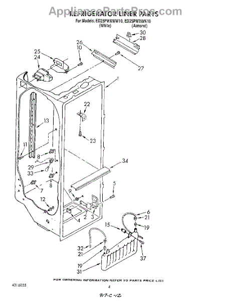 The Air Diffuser Assembly is an OEM part for Whirlpool refrigerators. It regulates the airflow between the refrigerator and freezer compartments, ensuring the proper distribution of cold air to maintain the desired temperatures in both sections.