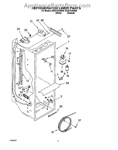 The Air Diffuser Assembly is an OEM part for Whirlpool refrigerators. It regulates the airflow between the refrigerator and freezer compartments, ensuring the proper distribution of cold air to maintain the desired temperatures in both sections.