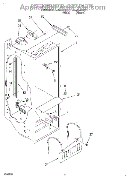The Air Diffuser Assembly is an OEM part for Whirlpool refrigerators. It regulates the airflow between the refrigerator and freezer compartments, ensuring the proper distribution of cold air to maintain the desired temperatures in both sections.