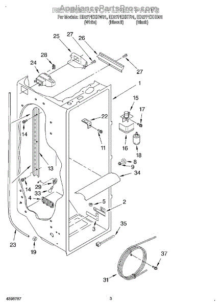 The Air Diffuser Assembly is an OEM part for Whirlpool refrigerators. It regulates the airflow between the refrigerator and freezer compartments, ensuring the proper distribution of cold air to maintain the desired temperatures in both sections.