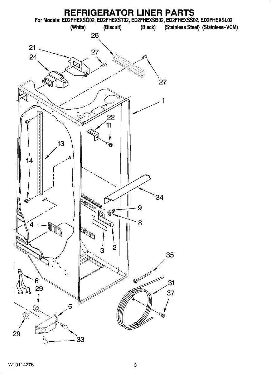 Parts for Whirlpool ED2FHEXSL02: 02 - Refrigerator Liner Parts