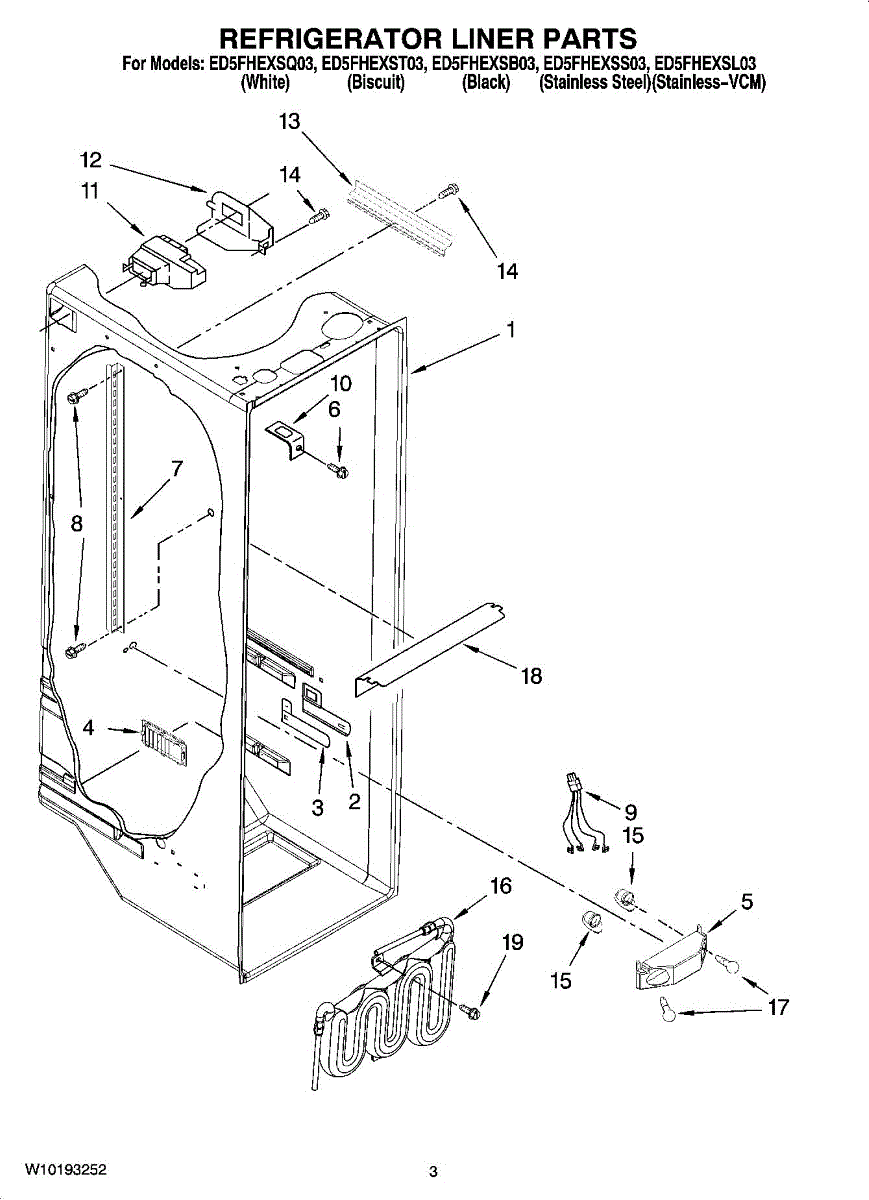 Parts for Whirlpool ED5FHEXST03: 02 - Refrigerator Liner Parts