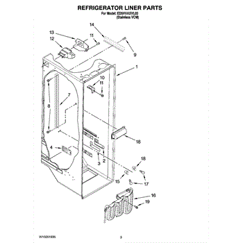The Water Reservoir Tubing is an OEM replacement part for Whirlpool refrigerators. It is a flexible plastic tubing that replaces the water reservoir and holds the water for the ice maker and dispenser. Causes can include cracks from heat or cold exposure over time, punctures from sharp edges during installation, or deterioration of plastic tubing that impacts integrity. Symptoms of bad water reservoir tubing include: