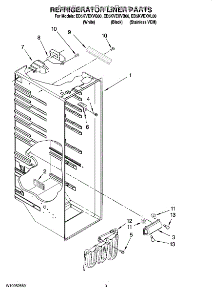 The Water Reservoir Tubing is an OEM replacement part for Whirlpool refrigerators. It is a flexible plastic tubing that replaces the water reservoir and holds the water for the ice maker and dispenser. Causes can include cracks from heat or cold exposure over time, punctures from sharp edges during installation, or deterioration of plastic tubing that impacts integrity. Symptoms of bad water reservoir tubing include: