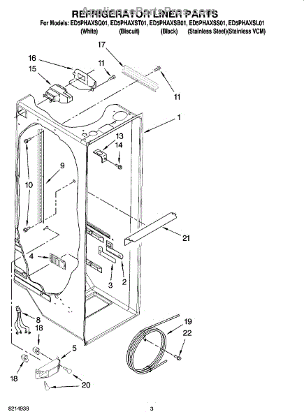 Parts for Whirlpool ED5PHAXST01: 02 - Refrigerator Liner Parts