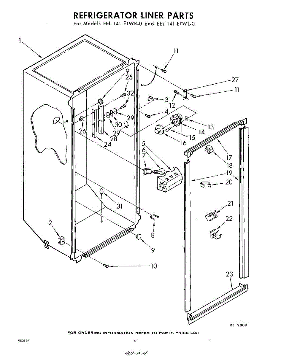 Parts for Whirlpool EEL141ETWR0: 04 - Refrigerator Liner Parts