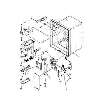 This is the refrigerator's water reservoir. It stores a small volume of water inside the fresh-food section so the dispenser delivers a steady, chilled supply. Replace a cracked or blocked tank to stop leaks and restore consistent flow. What it does