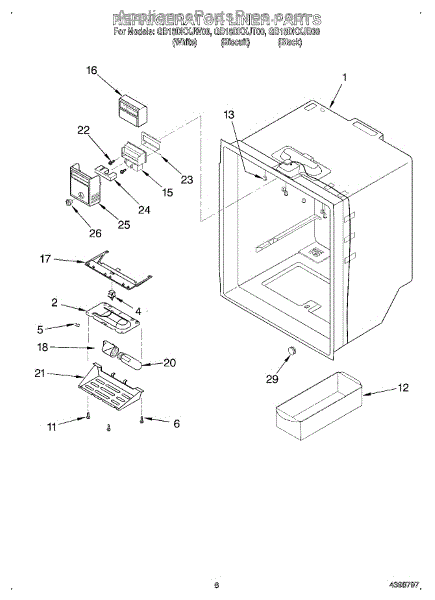 Parts for Whirlpool GB18DKXJW00: 04 - Refrigerator Liner Parts