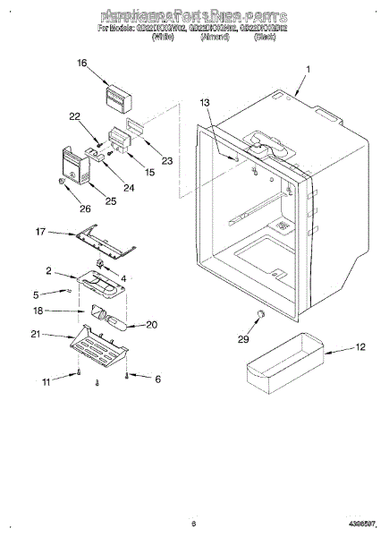 Parts for Whirlpool GB22DKXGW02: 04 - Refrigerator Liner Parts