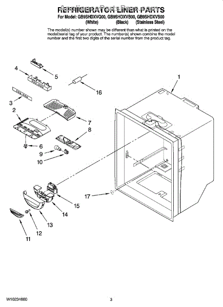 Parts for Whirlpool GB9SHDXVB00: 02 - Refrigerator Liner Parts