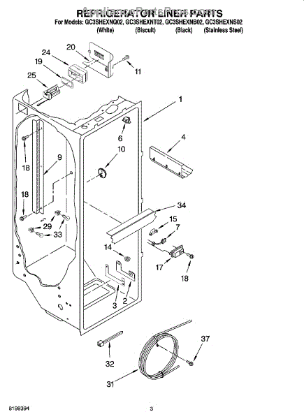 The Water Reservoir Tubing is an OEM replacement part for Whirlpool refrigerators. It is a flexible plastic tubing that replaces the water reservoir and holds the water for the ice maker and dispenser. Causes can include cracks from heat or cold exposure over time, punctures from sharp edges during installation, or deterioration of plastic tubing that impacts integrity. Symptoms of bad water reservoir tubing include: