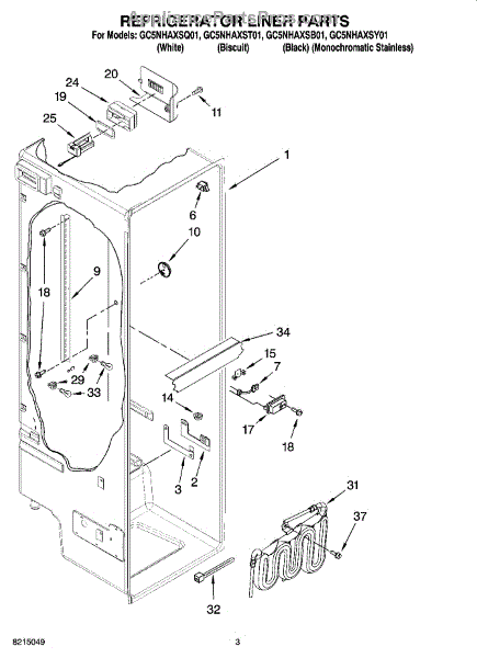 Parts for Whirlpool GC5NHAXSB01: 02 - Refrigerator Liner Parts