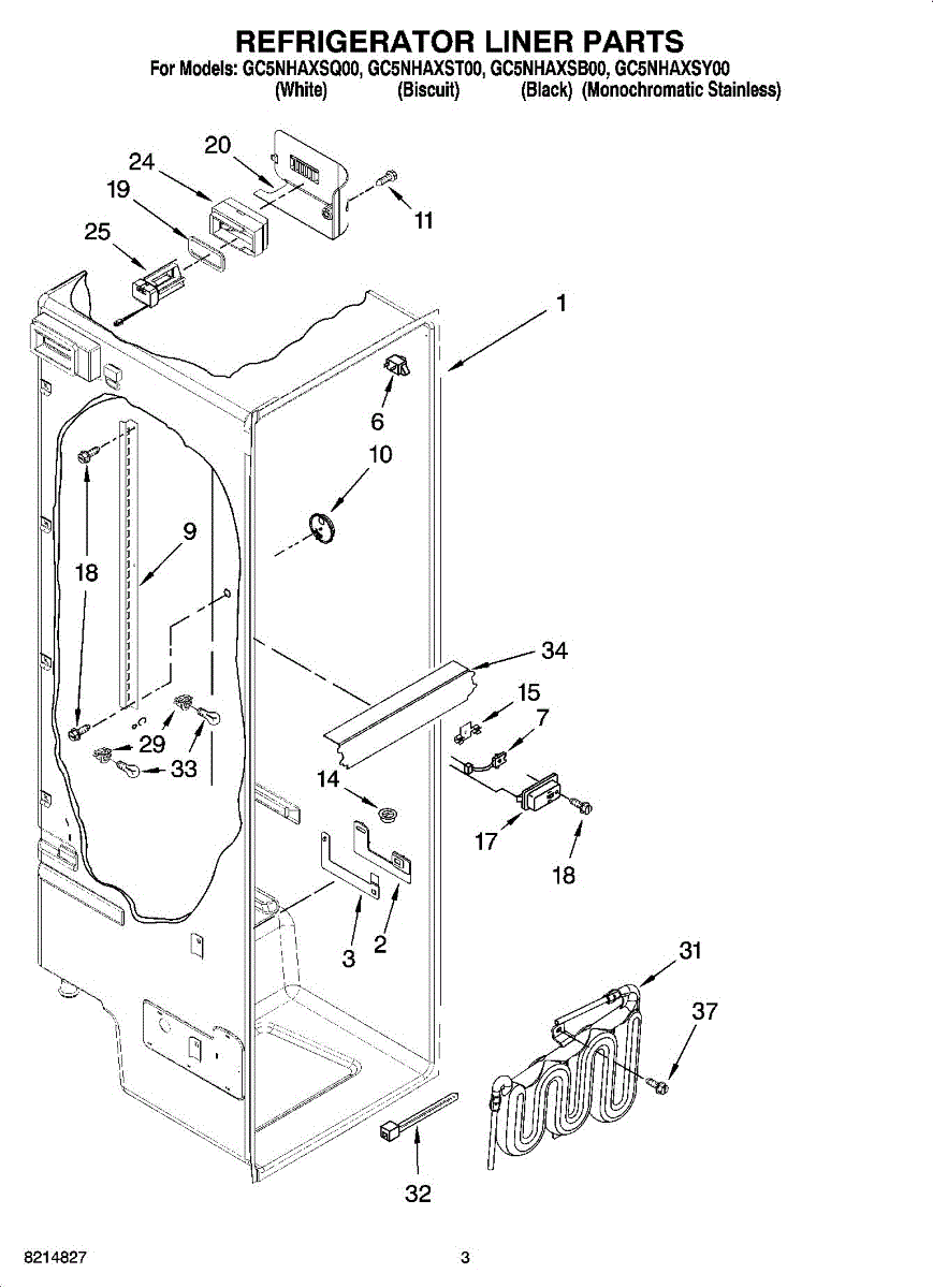Parts for Whirlpool GC5NHAXSQ00: 02 - Refrigerator Liner Parts