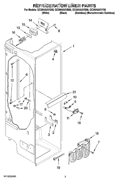 Parts for Whirlpool GC5NHAXVY00: 02 - Refrigerator Liner Parts