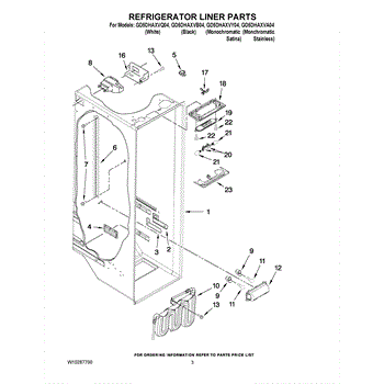 The Water Reservoir Tubing is an OEM replacement part for Whirlpool refrigerators. It is a flexible plastic tubing that replaces the water reservoir and holds the water for the ice maker and dispenser. Causes can include cracks from heat or cold exposure over time, punctures from sharp edges during installation, or deterioration of plastic tubing that impacts integrity. Symptoms of bad water reservoir tubing include: