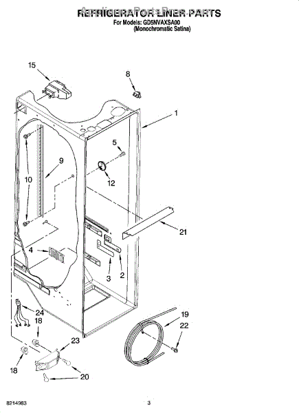 Parts for Whirlpool GD5NVAXSA00: 02 - Refrigerator Liner Parts