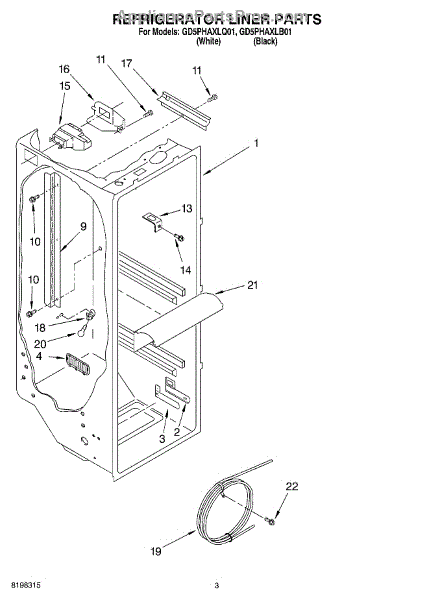 Parts for Whirlpool GD5PHAXLQ01: 02 - Refrigerator Liner Parts