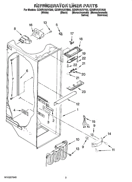 Parts for Whirlpool GD5RVAXVA00: 02 - Refrigerator Liner Parts