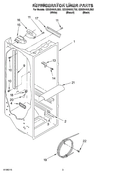 Parts for Whirlpool GD5SHAXLB02: 02 - Refrigerator Liner Parts