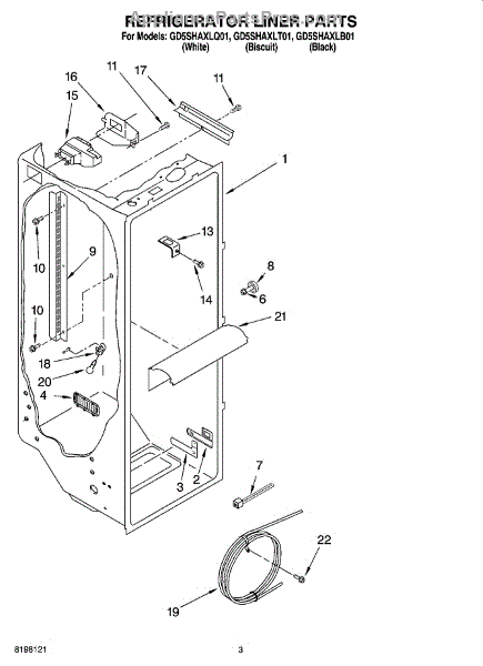 Parts for Whirlpool GD5SHAXLQ01: 02 - Refrigerator Liner Parts