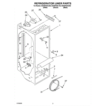Parts for Whirlpool GD5SHGXLT00: 02 - Refrigerator Liner Parts