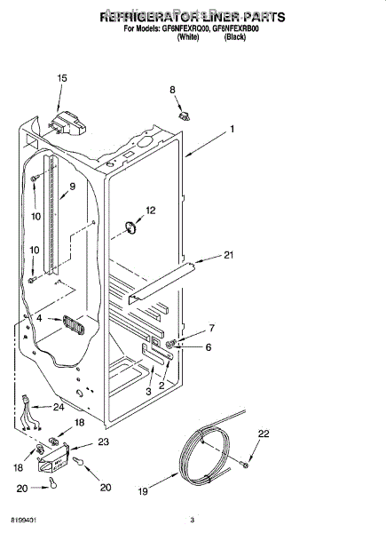 Parts for Whirlpool GF6NFEXRQ00: 02 - Refrigerator Liner Parts